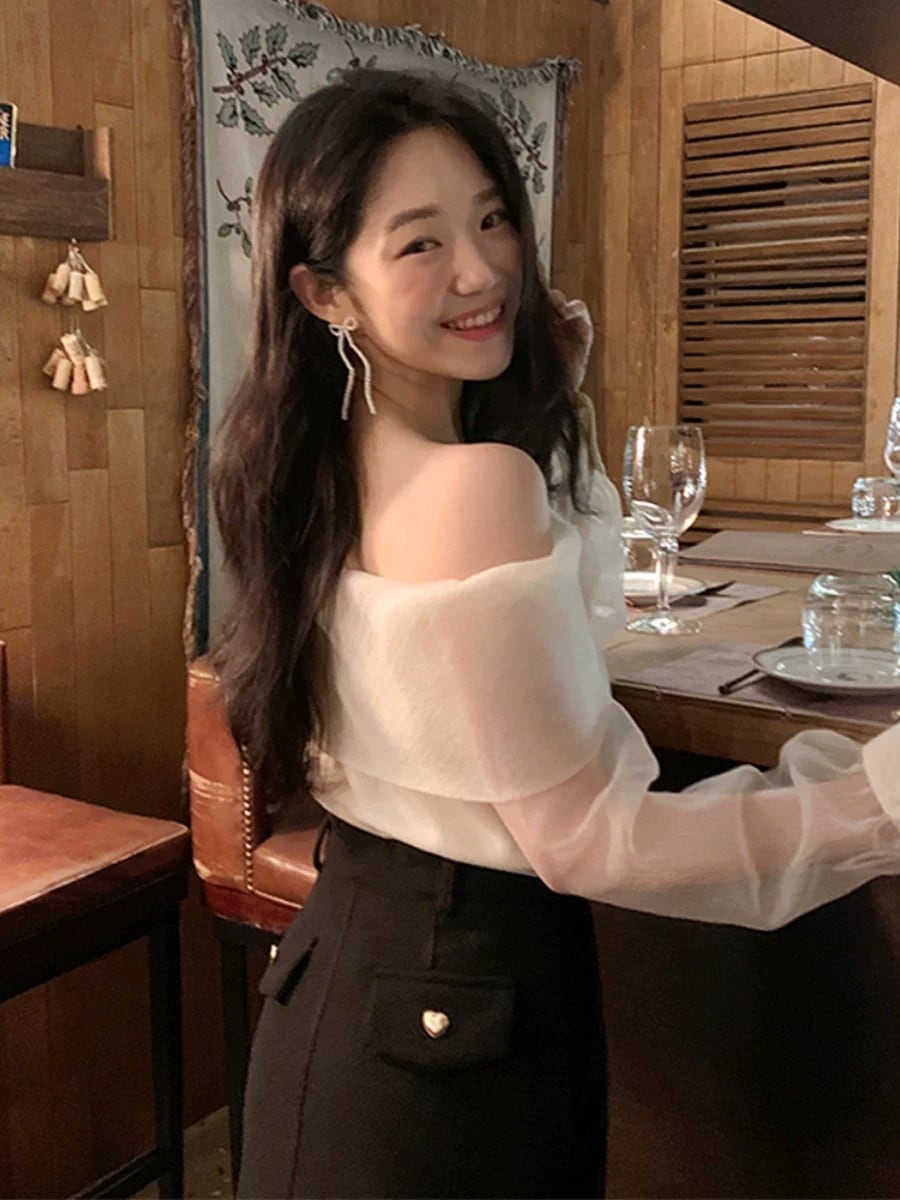 柔らかなシフォン素材が、美しいドレープを描くオフショルダートップス。上品なデザインで、大人の女性らしい魅力を引き立てます。