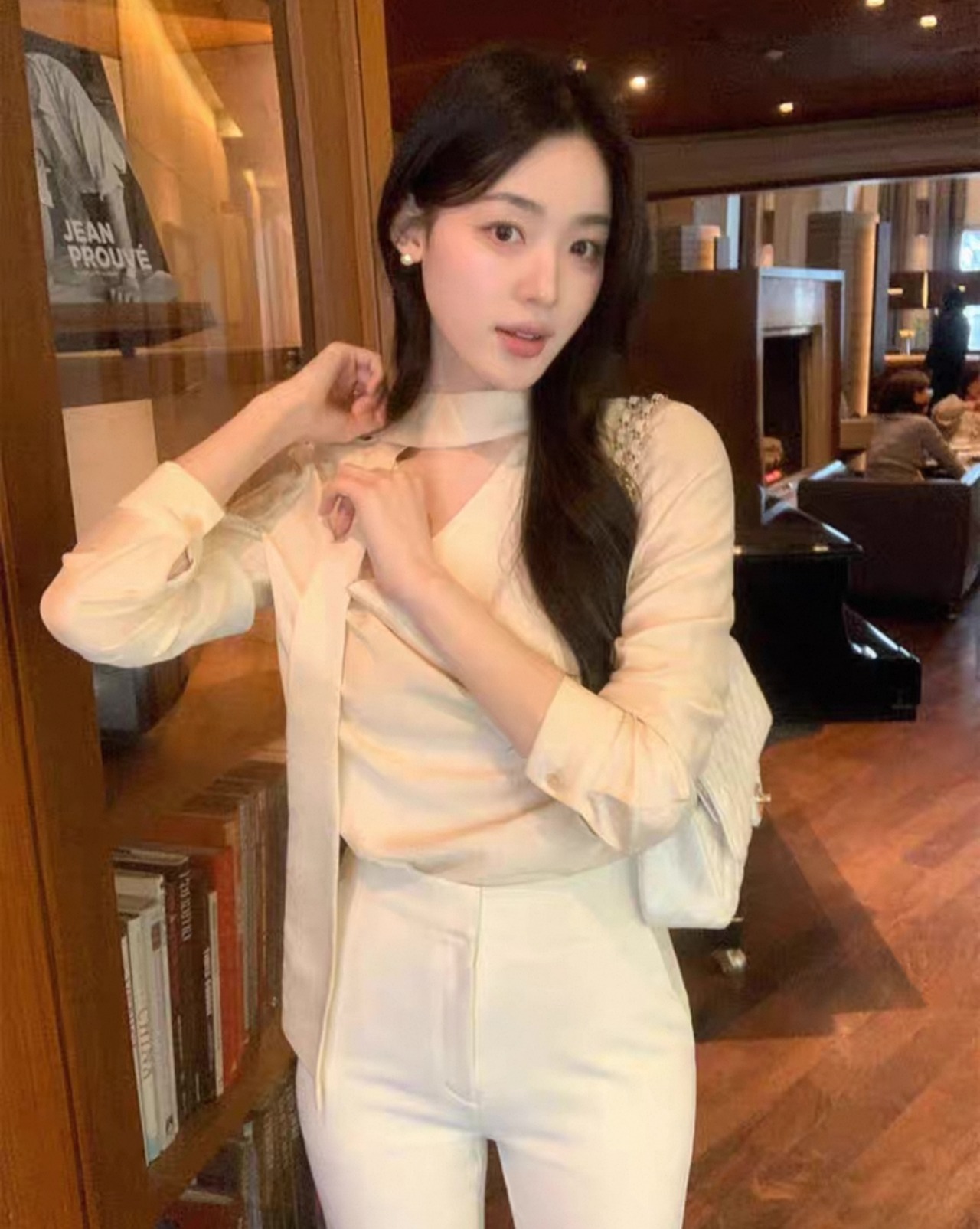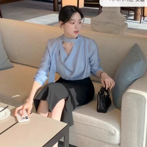 キーホールデザインが目を引く、上品な印象の長袖ブラウス。Vネックがデコルテをすっきりと見せ、首元のタイが洗練されたアクセントを加えます。オフィススタイルにはもちろん、きれいめなカジュアルスタイルにもマッチします。様々なレイヤードスタイルをお楽しみいただけます。